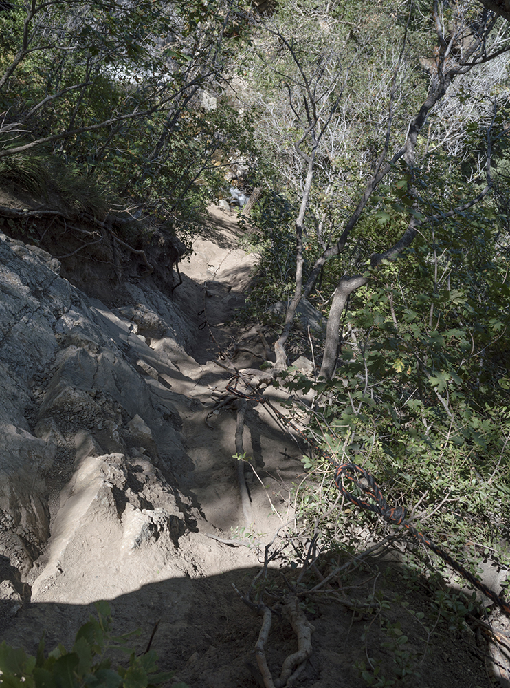 If you are up for some scrambling, you can climb down to the bottom of the cliff and see the waterfall from the base. This is a pretty steep path though, so use care. A rope had been placed there for some support when we hiked this trail in 2019, but the first time we went in 2015 there was no rope. As always for safety though, don't rely on any rope left on trails by others more than absolutely necessary, and always test them first.
